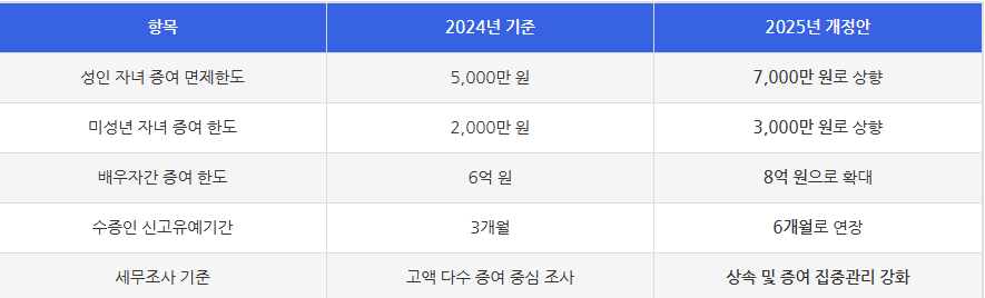 | 조부모 → 손자녀 | 2,000만 원 (미성년), 5,000만 원 (성인) |